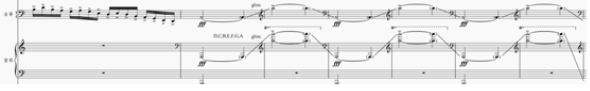 除了器乐音色潜力的发掘外,《醉千秋》中作曲家颇具创意地将人声“器乐化”,使人声作为器乐的一部分承担起结构功能。戏曲女高音以无唱词的婉转吟哦,融合昆曲、徽调、京剧等南北戏曲神韵的梅派唱腔,赋予“醉”这一美学意蕴丰富的想象空间。轻柔婉折的人声仅仅作为一种文化记忆的象征性声响,游离于器乐织体之上,让听众在不同音色交织中获得无限遐想与回味。