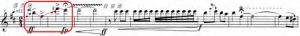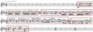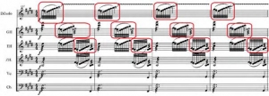 谱例7第一乐段第五乐句中的“折线动机”与“三音动机”