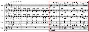 第二乐段自97~105小节为9小节的乐段尾声,随后是为第三乐段。