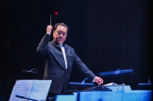 指挥家张列深耕民族管弦乐指挥多年,对乐队音色的打磨、音乐气韵的拿捏从容老到、精妙入微。 面对吹管柔婉、敲击刚健的特殊编制,他调度从容、取舍有度,让两大声部各展所长又和谐共生,让每一段旋律、每一个节奏都精准抵达人心。 其创作并执棒的《黄河之水天上来》气势磅礴,竹笛的轻盈、唢呐的豪放、笙的混响交相和鸣,如江河奔涌,跃动的鼓点似惊涛拍岸,吹管的旋律线条与敲击的节奏浪潮相互推动,将黄河的奔腾气势与华夏山河的壮阔雄姿演绎得淋漓尽致。