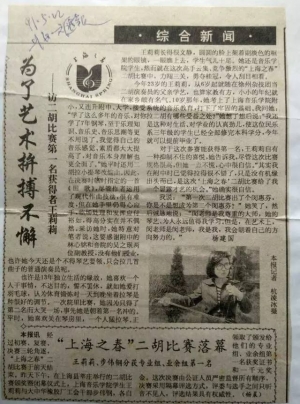 王莉莉是幸运的,在二胡学习的道路上并没有走“弯路”,可谓顺风顺水,1988年保送入大学也是顺理成章的事情。并随吴之珉老师继续深造。在日益成熟的演奏中,王莉莉等到一个肯定自己的机会。----“上海之春”二胡比赛的再次举办。