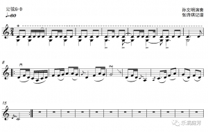 [29] 同上。“透波音”:第一把位按食指前先快速闪过空弦音,是孙文明将“江南丝竹”中的透音及波音奏法巧妙地结合。
