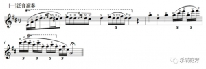 旋法:《弹乐》在结构上也许与《三六》有一定关系,可是更多地运用了江南丝竹中的加花、连锁等旋法使旋律发展。