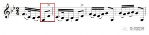 再进一步分析,又发现,孙演奏“羽、角”二音时均使用富有弹性的分弓拉奏,且重音多落在弱拍上,这与孙文明的第一首作品《弹乐》可谓异曲同工。这一“巧合”或许“有意”,或许“无意”,但它使得孙文明11首作品完整而丰满。