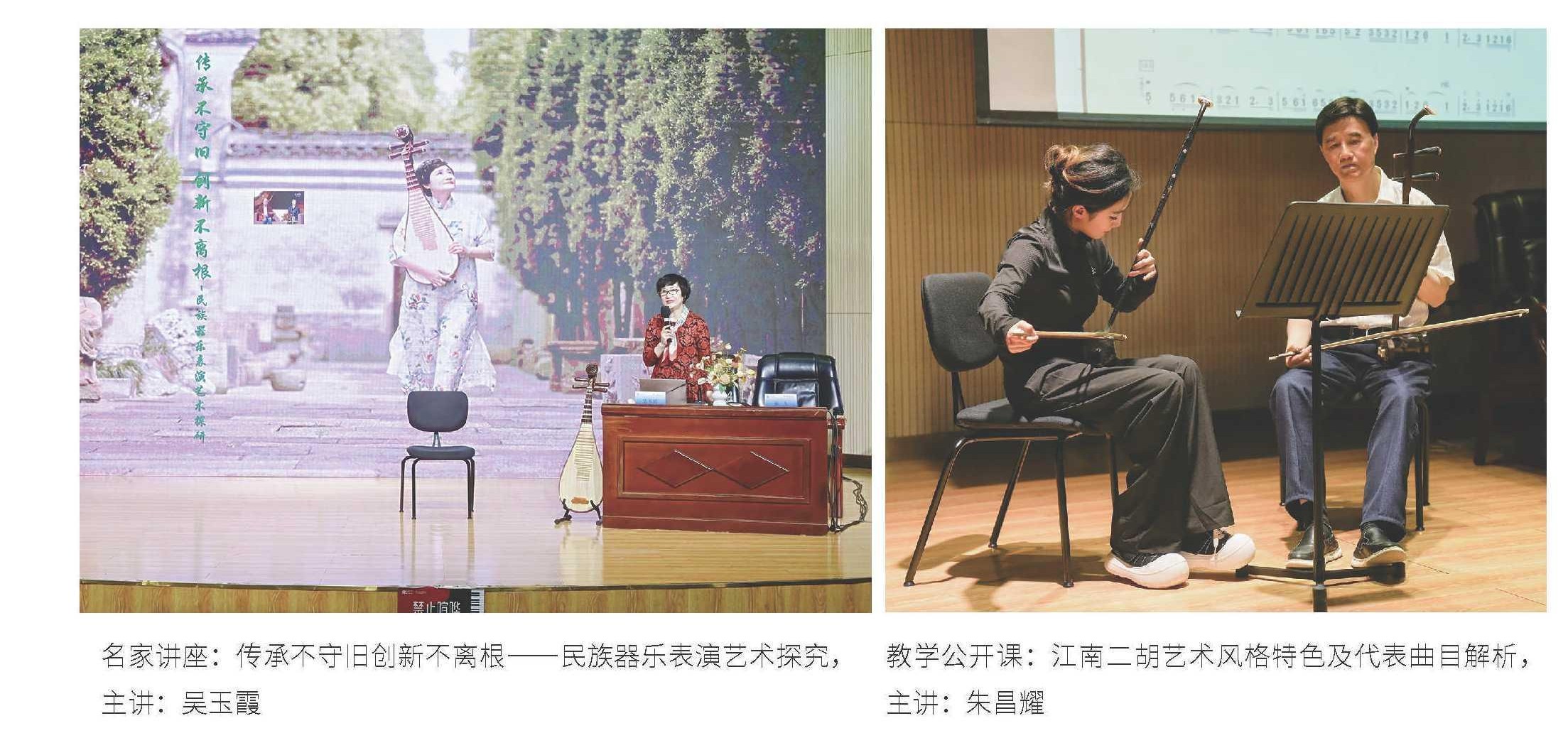 朱昌耀教授以《江南春色》等曲目为例,解析江南二胡风格与技巧,演示泛音、揉弦等技法,让师生体会地域文化滋养及“形神兼备”的传承要义。宋飞教授以《月夜》等刘天华经典为例,强调传承需守民族根基,结合其艺术思想解析作品人文内涵与技巧,探索传统曲目的当代演绎,让经典“活”在当下。