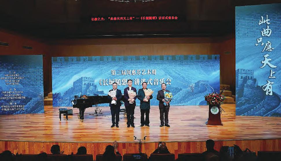 6日下午,闵先生的弟子刘光宇携手二胡演奏家朱昌耀、青年钢琴家汪宇及嘉宾刘振学先生,以讲述+演奏+视听的综合艺术形式,呈现了一台崭新的“此曲只应天上有—《长城随想》讲述式音乐会”。主讲兼演奏者刘光宇强调,闵惠芬的二胡艺术展现出民乐前所未有的神韵、格调和气势,以及民族性、史诗性与交响性,毫无疑问使二胡跻身世界音乐之林,使刘天华“以期国乐与世界音乐并驾齐驱”的宏愿向前迈进了一大步!