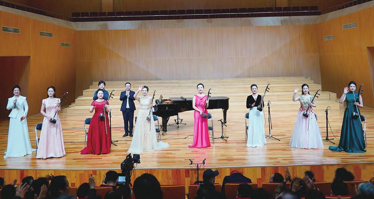 6日晚的“器乐演奏声腔化专场音乐会”上,来自多家艺术院团的青年演奏家郭琴星、韩婷婷、刘宇、龚楠、李志卿、薛辰茜等,分别演奏了闵惠芬“器乐演奏声腔化”的典范之作:《迷胡调》《逍遥津》《忆秦娥》《寒鸦戏水》《游园》《昭君出塞》,以及当代二胡优秀代表作《巾帼》,并首演胡琴四重奏《苏园》③(范明磊、张家康、韩玉、周子旋),音乐会在《红旗渠水绕太行》中结束。这场演出既是对闵惠芬艺术理念的坚守与践行,亦是对其探索民族音乐心路的响亮回应。
