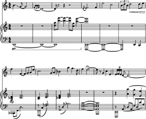 总结上述创演成功的经验,可笼而统之将其视为西方音乐体裁与中国音乐风格的有效融合。然而更细化地包含了审美习惯、创作理论、经验和与民族特性相关的预先记忆等各方面;也涉及到庞大而悠久的中国特征音响素材以及与体裁原则之间结合的技术化问题。从先代作品的成功来看,至少以下几点尤其值得关注:首先是音乐语言的民族化。来自传统民间音乐的素材、以五声性为基础的调式和声体系、支声性的多声部思维、民族乐器的系统使用,逐渐成为创作中的广泛共识。《梁祝》中“爱情主题”来自传统越剧的旋律素材、《黄河》中五声性调式为基础的探索与尝试、《长城随想曲》中现代音乐元素与传统调式和声的结合都很好地回答过协奏曲创作中音乐叙事民族化的问题。其次是讲中国故事,令中国受众喜闻乐见,在纯音乐的体裁样式中引入中国题材的内容,将西方的音乐结构与中国故事的叙事有机统一起来是成功的经验之一。回顾当代我国取得成功的协奏曲创作,民族化的叙事几乎不可或缺。当然,与中国叙事结合并非等同于通过音乐直接言说故事,它也可以以一种模糊、抽象的形式存在于作品中,传达作曲家对叙事对象的感悟、体验、认识和解读,无论采取哪种方式,让听众捕捉到熟悉的“故事”线索尤为重要。[1]