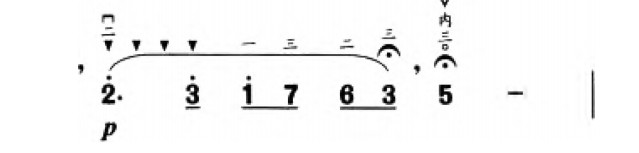 过渡句143小节,这一乐句是一个自由的小散板,节奏较为自由,整体的速度是由慢到快的,将听众的思绪从深情的思乡之情中抽离出来,带入河南人民热情、朴实的精神面貌中。