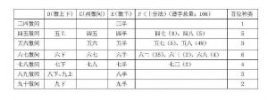从上表可以看到,《琴书大全》中出现了C、D、E、F四种记写方式,徽分音位只出现了八种,处于早期探索时期。在“十分法”那一栏,括号里的数字就是出现的徽分谱字数量,总106个,“六二”“五八”出现次数较多,说明这两个徽分位使用较为熟练,将徽分记写准确和不准确的例子各举一例。