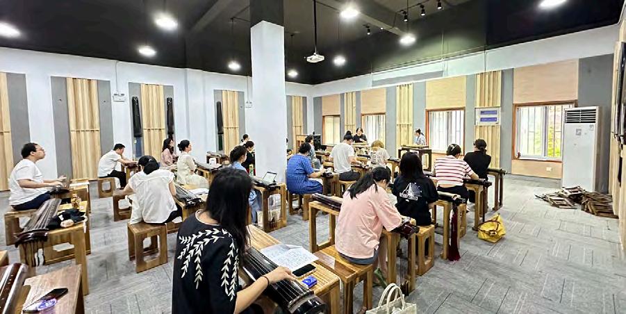 为丰富学员的培训内容,调节理论课程与实践课程的平衡,项目带领学员走出课堂,先后对扬州市文化馆、广陵琴派史料陈列馆、南风琴社、马维衡古琴博物馆、扬州市青年古琴协会、守仁制琴社以及琴韵筝声琴筝厂进行实地考察调研,并与考察地点多位负责人进行了访谈,与扬州市青年琴人进行了琴艺交流。通过多次考察活动,学员们在古琴的非遗保护、斫制工艺、销售市场、地方协会发展、民间收藏、乐器厂现状等方面进行了深入观察与思考,并在古琴社会实践层面有了新的认识和体会。