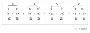 作结;落在商音上的乐节a2、b1、b2、c3、d3,皆以