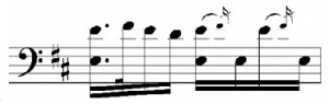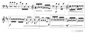 的形式,c句落在了深沉的低八度音区,并在节奏上进行了变化