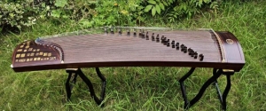 1979年在江西鹰潭龙虎山崖墓出土的一台十三弦筝,据专家推定,其历史可追溯至2595±75年前,属于战国早期。1991年江苏吴县长桥村战国墓中也发掘出一台十二弦筝。这些物证为筝近三千年的历史提供了强有力的依据。在史料中,汉代司马迁在《史记•李斯列传》中的《谏逐客书》里就有关于古筝的记载:“夫击瓮叩缶弹筝博髀,而歌呼呜呜快耳目者,真秦之声也。”西晋时期的文学家傅玄作《筝赋》,序言中对筝的外形描绘是:“上崇似天,下平似地,中空准六合,弦柱拟十二月。”中国传统文化推崇天人合一,强调自然与艺术的结合,古筝面板像天,底板平整,中空的共鸣箱包含东西南北上下六合,十二根弦则象征了一年的十二个月,因此傅玄称赞筝“体合法度,节究哀乐”,是“仁智之器”。