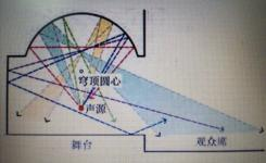 这种结构在戏台正上方,为演出的演员提供了非常好的 “拢音 ”效果, 同时结合戏台所形成的腔体结构, 以及戏台台基和戏台上方的藻井形成多次声音的反射以达到声音扩大的效果,可以很好的将戏台上的声音反射到台下观众的耳朵里(见图 3)。在那个没有扩声设备的时代里,这种戏台的建筑结构可以很好的解决对于声音放大的问题。而像牛王庙戏台这样的建筑,遍布我国大江南北,在很长一段历史时期里,都是我国戏曲演出主要场所。根据不完全统计,截止 2008 年的统计调查结果显示,全国大约仅存 1 万座古戏台了,可以说,古戏台遍布了我国的各个地区,无论是古代还是现代,遍布乡野村镇的各种大大小小的戏台都是戏曲演出的重要场所。