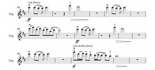 谱例1:小提琴声部(笔者编配、制谱)