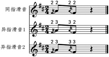 谱例4:回滑音的三种指法安排