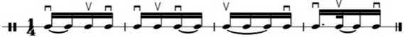 谱例12:位于过门最后一音的打音演奏音效
