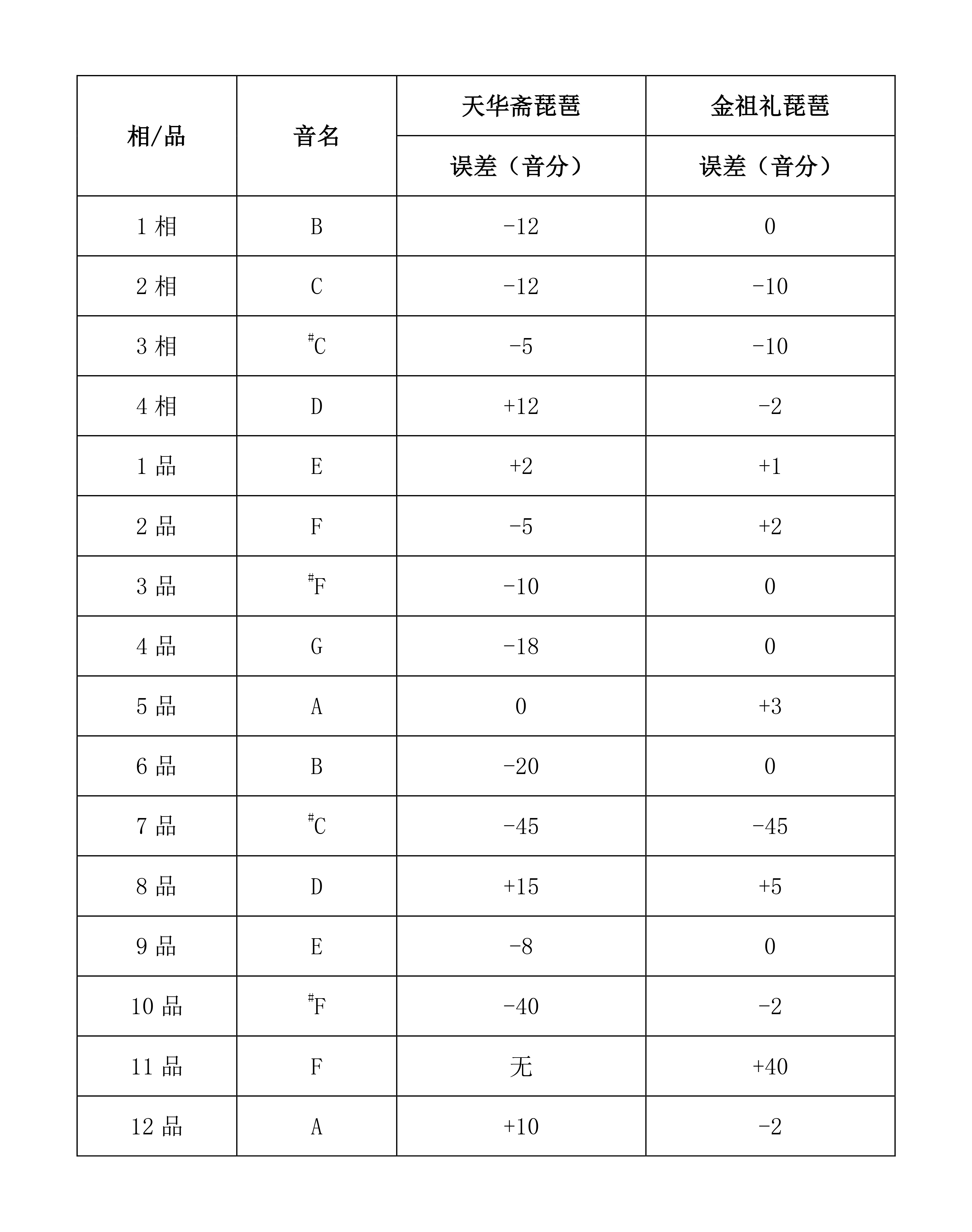 表1 琵琶测音数据表