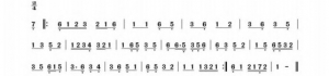 3”定弦。如同前述,在整首唱段中,月琴主要以外弦弹奏,外弦的空弦音为“3”,第十二品音位为高八度的“