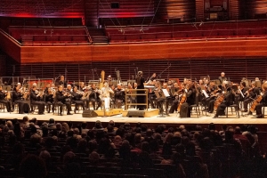 于红梅的演绎,让谭盾的《卧虎藏龙》完美地彰显出东西方音乐语言的精妙融合。二胡的刚劲与柔美与恢宏的乐队展开了层叠细密的对话,细腻的弓法传递着旋律中的韵味,强弱虚实的变化展现了中国文化特有的审美意境。她的演奏,以二胡极具感染力的音色和其个人“琴人合一”的艺术风格,将东方武侠世界中的情感张力和文化意象转化为感人至深的音乐语言。中央音乐学院的尹飞出色地担纲了中国民族打击乐的演奏。