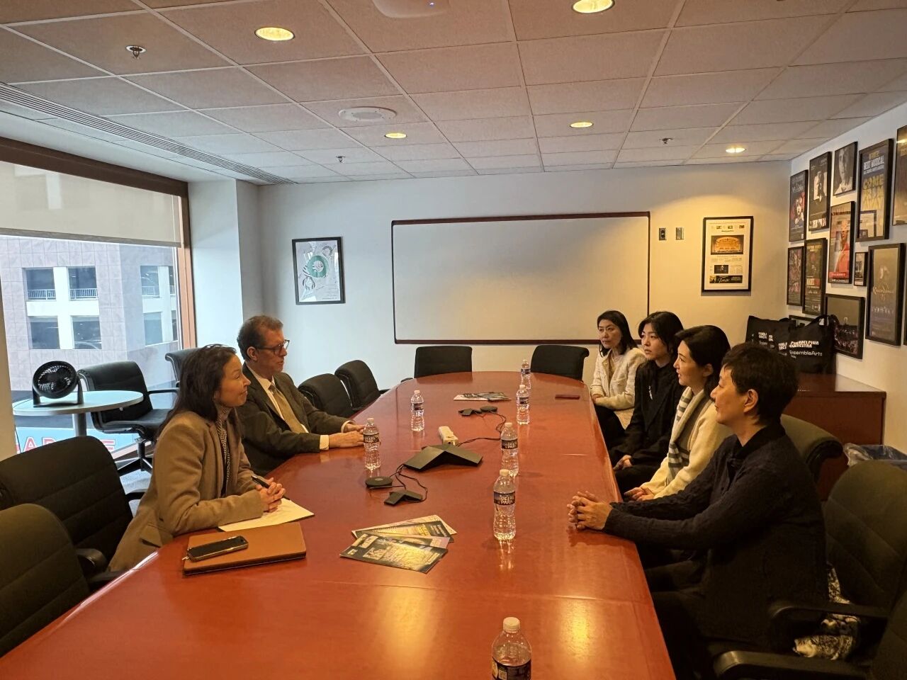 作为专业高校访演团,除舞台演出外,与兄弟院校的互学互鉴、学术交流,亦是中央音乐学院代表团此行的重要内容。首场音乐会落幕之后,1月29日上午,于红梅院长率领代表团部分成员赴柯蒂斯音乐学院开展学术交流。柯蒂斯音乐学院院长、中提琴演奏家罗伯特・迪亚兹教授,教学副院长、作曲家尼克・迪贝拉尔迪诺教授等热情接待并会见了中央音乐学院代表团。双方围绕柯蒂斯音乐学院的办学历史与特色、人才培养、课程设置及艺术实践等议题,进行了深入探讨与交流。
