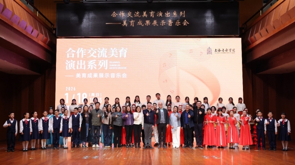 由上海音乐学院合作交流办主办的2026年度“合作交流美育演出系列”首场活动——“美育成果展示音乐会”,近日在上海音乐学院贺绿汀音乐厅温情上演。上海音乐学院党委副书记、副院长汤隽杰,各合作办学单位负责人出席本次活动。此次音乐会汇聚多所合作办学学校学生艺术团,是上音合作办学体系在持续沉淀基础上取得美育成果的集中呈现,标志着2026年上音美育系列活动正式启动。