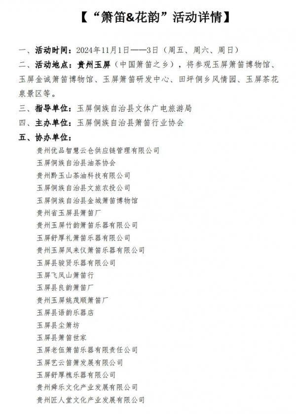 四、主办单位:玉屏侗族自治县箫笛行业协会