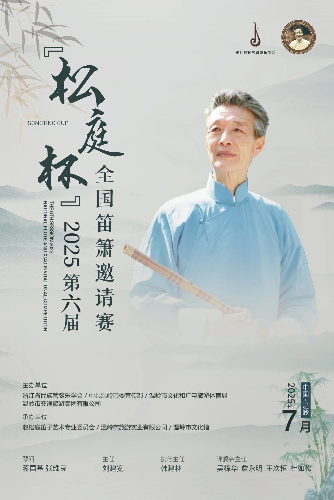 在成功举办往届活动的基础上,怀着对赵松庭先生卓越艺术成就的敬意,为了继承和发扬其笛艺精髓与人文精神,组委会将于2025年7月在温岭市举办第六届“松庭杯”。本次活动将聚焦于深化笛艺交流,推动民族音乐的蓬勃发展,并积极探索艺术与文化旅游相融合的新模式。通过活动为参赛者提供一个展现才华的广阔舞台,同时促进公众对中国传统笛艺及其背后深厚文化底蕴的理解与欣赏。此外,通过艺术与地方文化的有机结合,我们期待能吸引更多人关注并参与到民族音乐的传承与发展之中,共同见证这一古老艺术形式在新时代背景下的全新生命力。