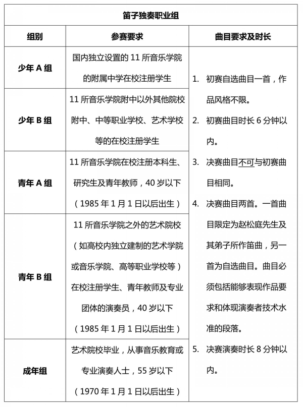 演奏乐器可笛箫任意组合,形式可为重奏、合奏。