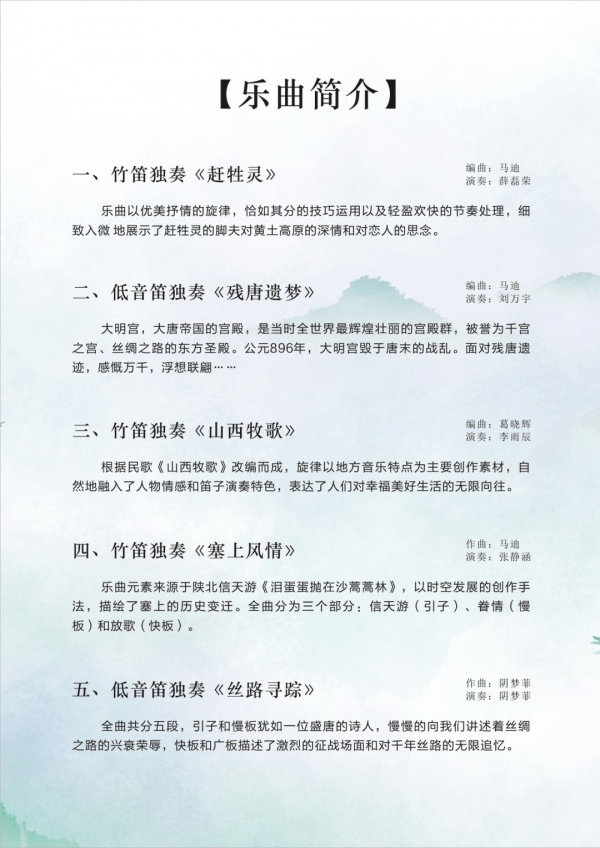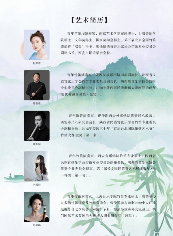 繁花似锦——长安笛韵新生代专场音乐会将于2025年11月1日19:30在西安天恩剧院举行,阴梦菲、薛磊荣、刘万宇、李雨辰、张静涵将精彩献艺。艺术指导:著名竹笛演奏家马迪,总策划:乔建新,主办:陕西省音乐家协会笛箫专业委员会、陕西省民族管弦乐学会竹笛专业委员会,承办:天恩剧院。
