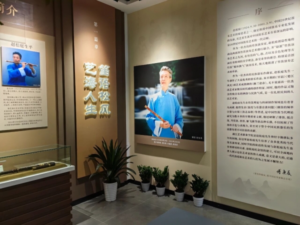 修缮一新的赵松庭纪念馆则作为国内首个系统展示赵松庭先生艺术生涯与教育贡献的专题纪念馆,备受瞩目。新馆不仅是对这位一代宗师的深切缅怀,更是为了传承其“德艺双馨、精益求精”的艺术精神,激励后学在民族音乐的道路上不断探索与创新。馆内陈列了赵先生生前使用过的竹笛、手稿、曲谱、著作以及大量影像资料,详尽梳理了其作为“江南笛王”在笛子演奏、乐器改革、乐曲创作、教育教学和人才培养方面的卓越成就。浙江省松庭笛箫公益艺术中心对新馆建设布展予以大力的支持。