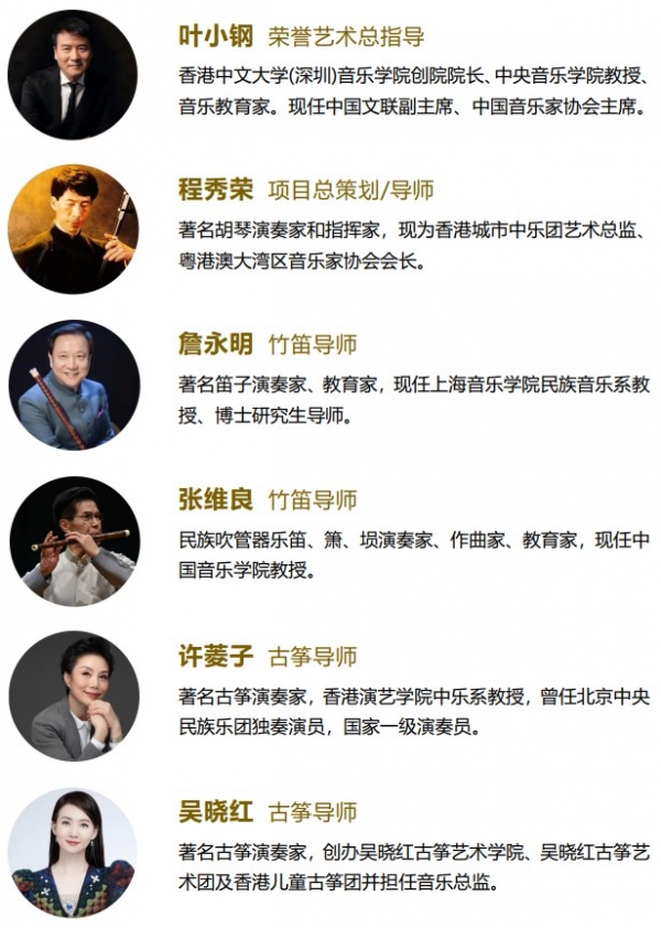 本项目由中国音乐家协会主席叶小钢任荣誉艺术总指导,香港城市中乐团艺术总监程秀荣任总策划。