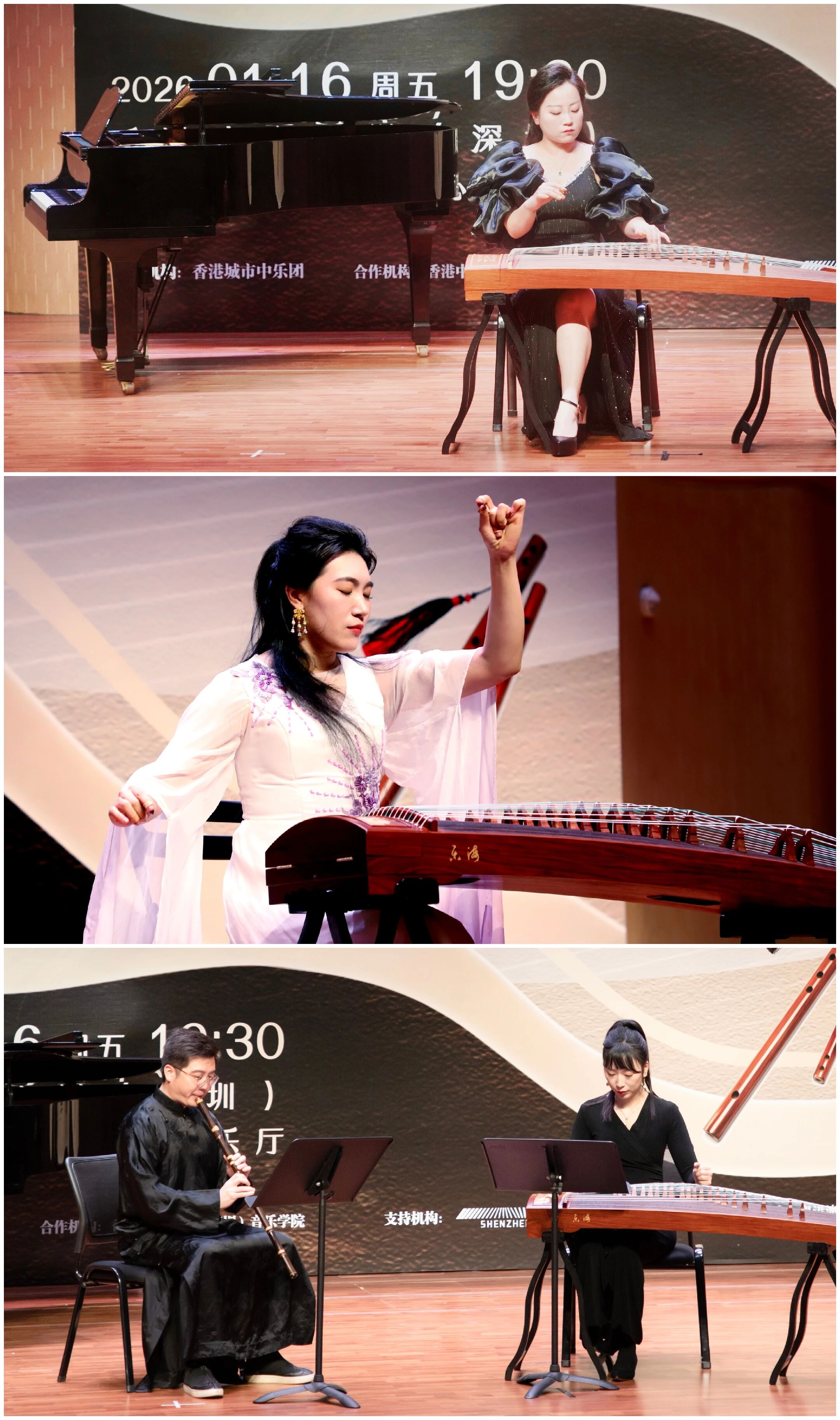 2026年1月16日晚上,由香港城市中乐团主办、香港特区政府大力支持的国家艺术基金2025年度资助项目“百年中乐——民族器乐演奏人才培训”竹笛与古筝专场汇报音乐会,在香港中文大学(深圳)逸夫国际会议中心音乐厅隆重上演!