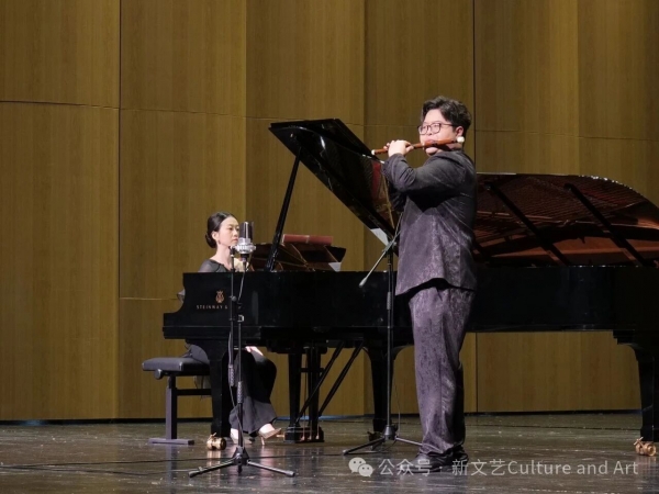 卢亮辉先生的《春风夜雨情》以台湾民谣为素材,用笛声讲述跨越时光的思念故事,细腻的情感表达让观众身临其境;助演嘉宾、程竞楷的朋友、也是宁波籍沈阳音乐学院优秀学子华聪莹演奏的陈哲女士创作的古筝独奏曲《晨兴》取材京韵大鼓《丑末寅初》,以“散-慢-中-快-急”的节奏铺展老北京清晨的市井烟火,满是地道的京腔京韵;音乐会主题作品《春悟》作为刘铁男教授的代表作,将初春的生机、遐想与希望融入旋律,程竞楷以多年学艺的感悟演绎作品,让笛音成为春日最美的告白;郝维亚先生的《陌上花开》化用苏轼经典词句,传统旋律与现代创作手法交融,笛声里尽是春暖花开的悠然与生机。