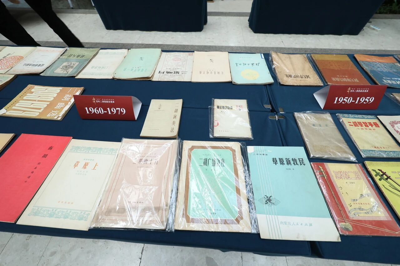 系列活动以“观谱赏琴·乐韵百年”胡琴书谱与乐器展拉开序幕。承蒙多位收藏家前辈鼎力支持,百余部横跨百年的书谱与20余把传世老琴得以在此集结。当观众轻抚那些泛着岁月黄晕的曲谱,凝视琴身上被时光摩挲出的温润包浆,再步入音乐厅聆听它们奏响的旋律,历史便不再是遥远的文字,而成为可感、可触、可共鸣的温度。