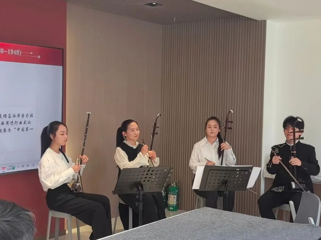 此次党课是民族器乐系教师党支部“传承”——中国民族器乐里的红色力量活动之一。下一步,支部将持续推进“党建+艺术服务”模式,把更多优质教学资源送到基层一线,让民族器乐成为传播中国故事、赓续红色血脉的生动载体。
