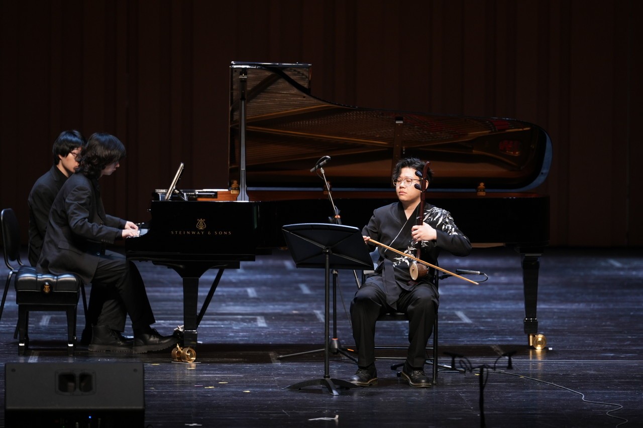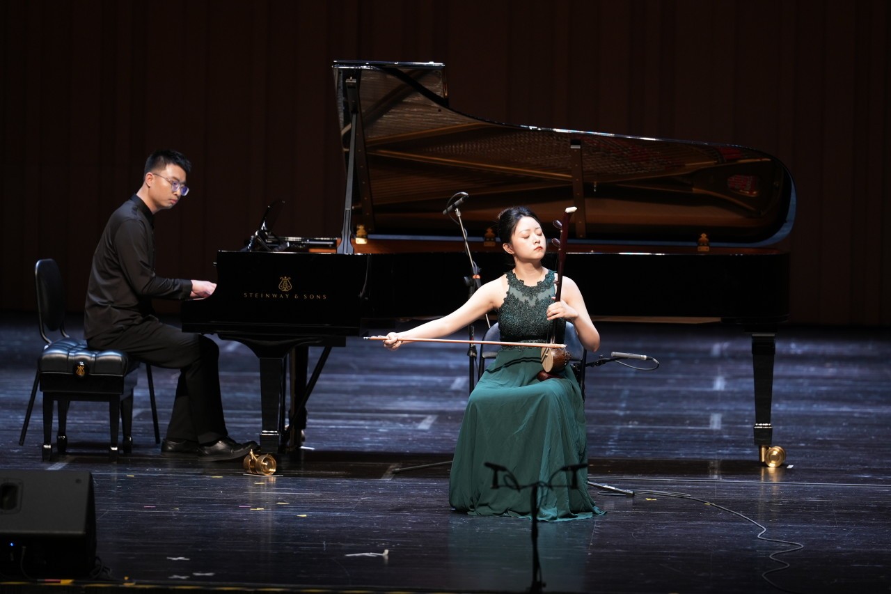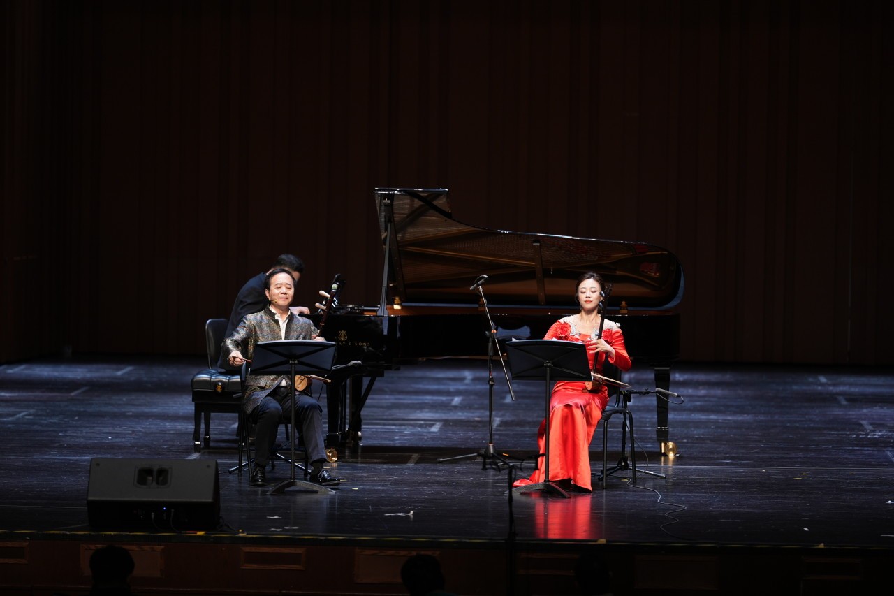 《四象生》(作曲:王亦旋)巧妙融合中国戏曲“唱念做打”与西方回旋曲式,在演奏者刘欣、汪宇的演绎下,既有传统戏韵,又具结构新意;《中音板胡奏鸣曲2024》(作曲:李懿德)则结合中原音调与奏鸣曲式,由张滢鑫演奏、周正义伴奏,技术艰深而情感充沛。