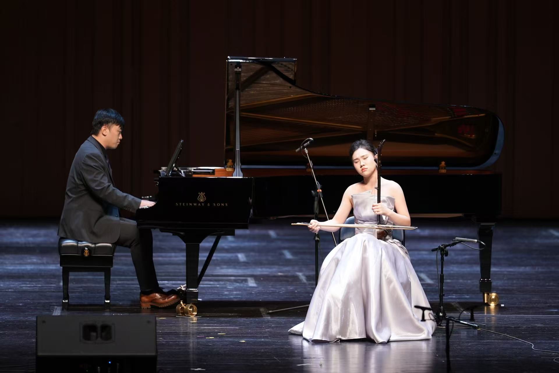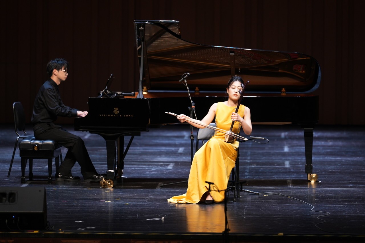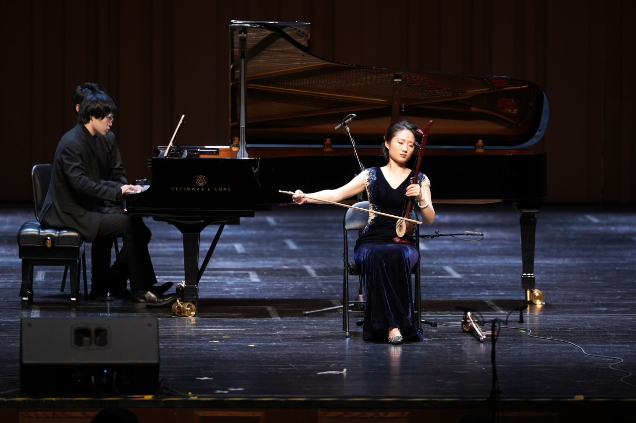 《四象生》(作曲:王亦旋)巧妙融合中国戏曲“唱念做打”与西方回旋曲式,在演奏者刘欣、汪宇的演绎下,既有传统戏韵,又具结构新意;《中音板胡奏鸣曲2024》(作曲:李懿德)则结合中原音调与奏鸣曲式,由张滢鑫演奏、周正义伴奏,技术艰深而情感充沛。