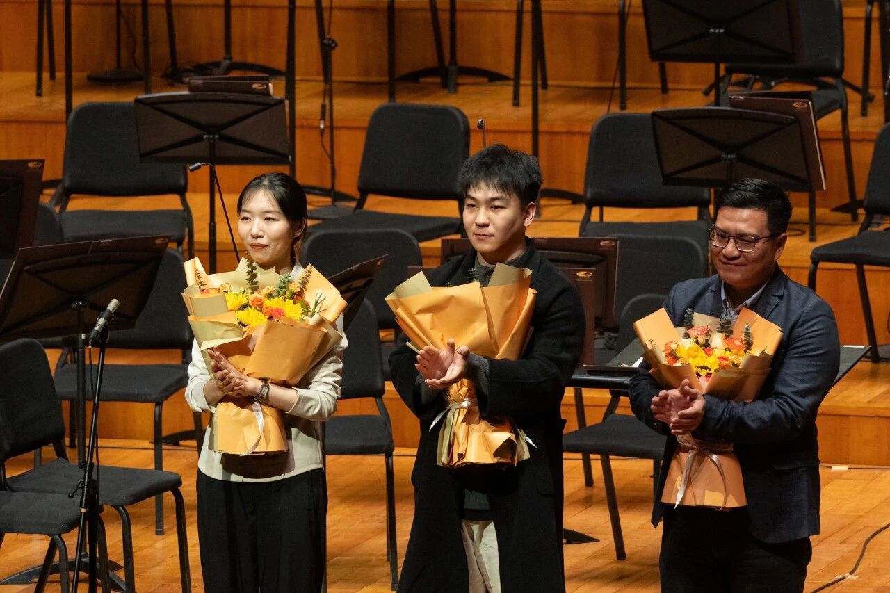 中央音乐学院作曲系硕士李子傲的《韵神》,以湖南方言音韵为灵感,通过戏剧化处理民间音乐素材,实现语言与器乐的高度交融;中央音乐学院作曲系博士余忠元的《尘世之网》,以二胡与乐队的追逐探寻,完成一场从尘世迷障到内心清凉的哲思性音乐叙事;中央音乐学院作曲系硕士冯子慧的《哭笑鸟》,通过二胡独奏与管弦乐队持续的对抗式并置,探索个体情感如何超越传统意义上的悲欢,抵达难以定义、无法言说的生命状态;美国新英格兰音乐学院作曲系硕士蒲天的《与子瞻同游》,以音乐为舟,与苏轼展开跨越时空的精神对话,勾勒其豁达洒脱的人生轨迹;就读于上海音乐学院作曲指挥系的阿拉坦茂尼,以一段牧民歌谣为主导动机创作了《忆雪原》,运用节奏变奏,勾勒出一幅苍茫而富有个人体验的音画。