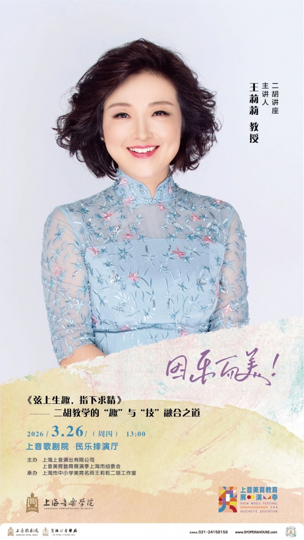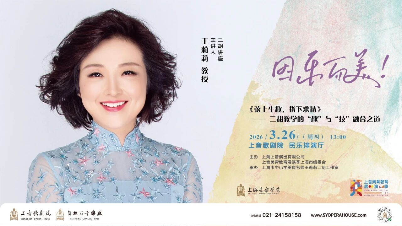 上音美育教育展演季上海市展演组委会特邀上海音乐学院教授、博士生导师王莉莉,倾情带来二胡讲座《弦上生趣,指下求精》——二胡教学的“趣”与“技”融合之道。