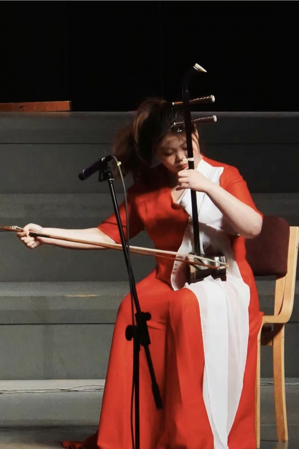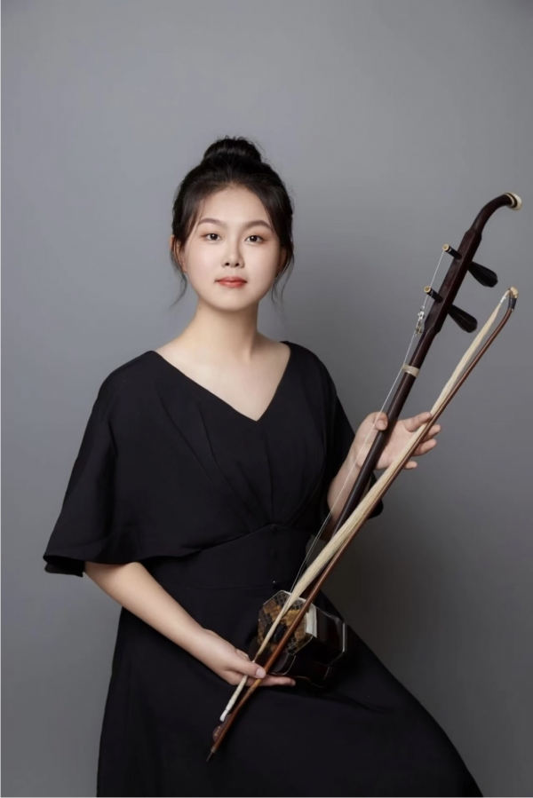 孙代馨,上海大学音乐学院2023级音乐表演二胡专业本科生,师从任华清副教授,曾获上海大学优秀学生、2024北京传统音乐节中国音乐民族器乐展演综合院校专业组二等奖、2025敦煌杯中国二胡演奏比赛职业C组银奖。