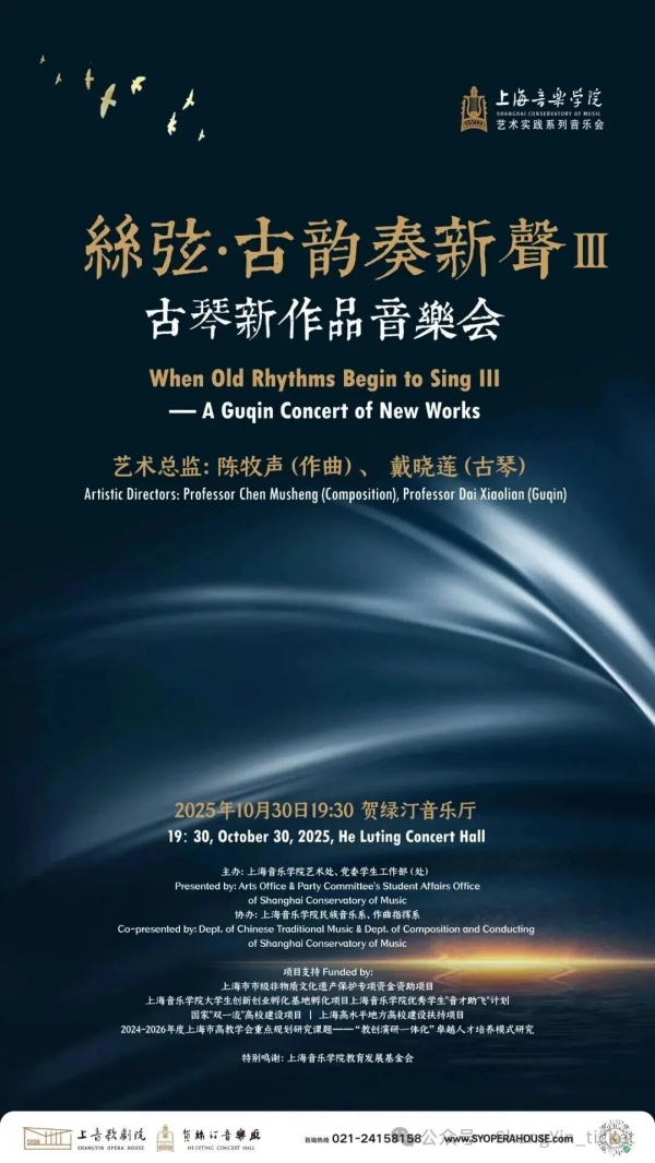 本场音乐会由作曲指挥系陈牧声教授与民族音乐系古琴专业戴晓莲教授联合发起。这场历时一年筹备的古琴与现代作曲的深度合作,将积极推动古琴在创作与演奏领域的当代化发展。