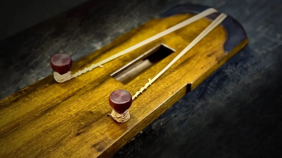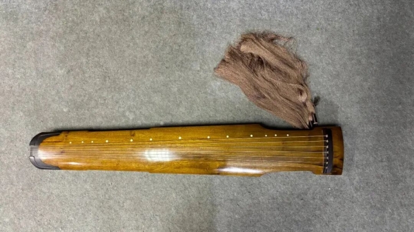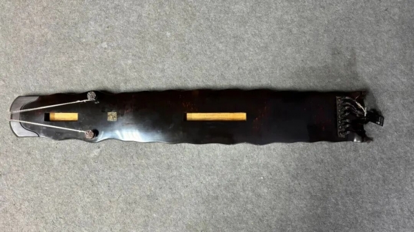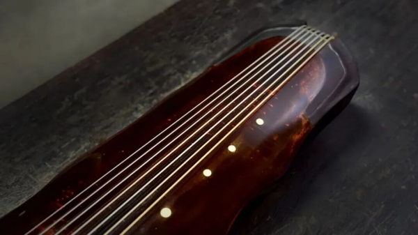 唐人御工坊斫琴师王玉鹏亲斫金丝楠木仲尼式古琴,木胎使用汉代金丝楠木,琴轸为和田碧玉、雁足为红木,音色通透洪松、余音悠长。