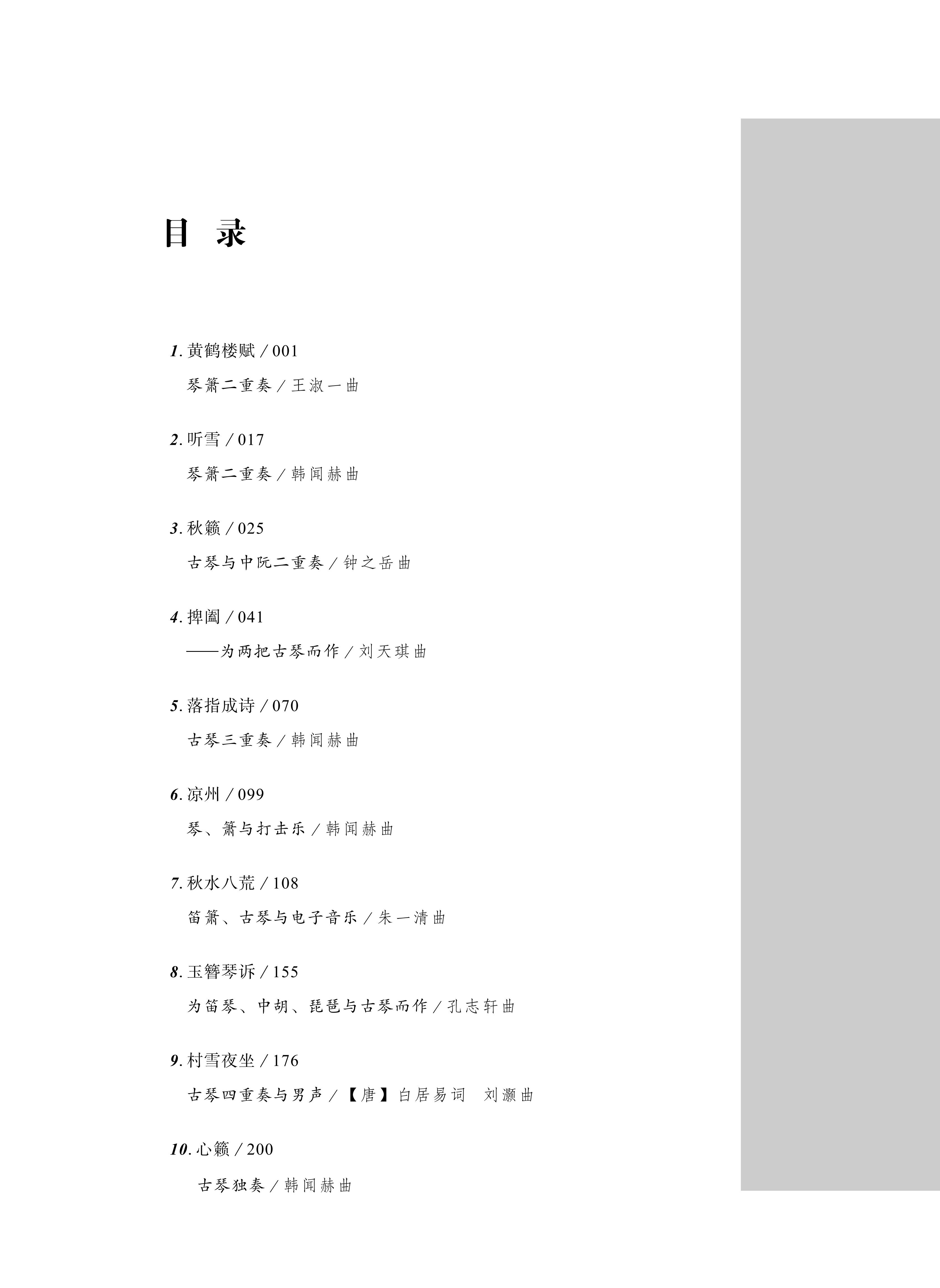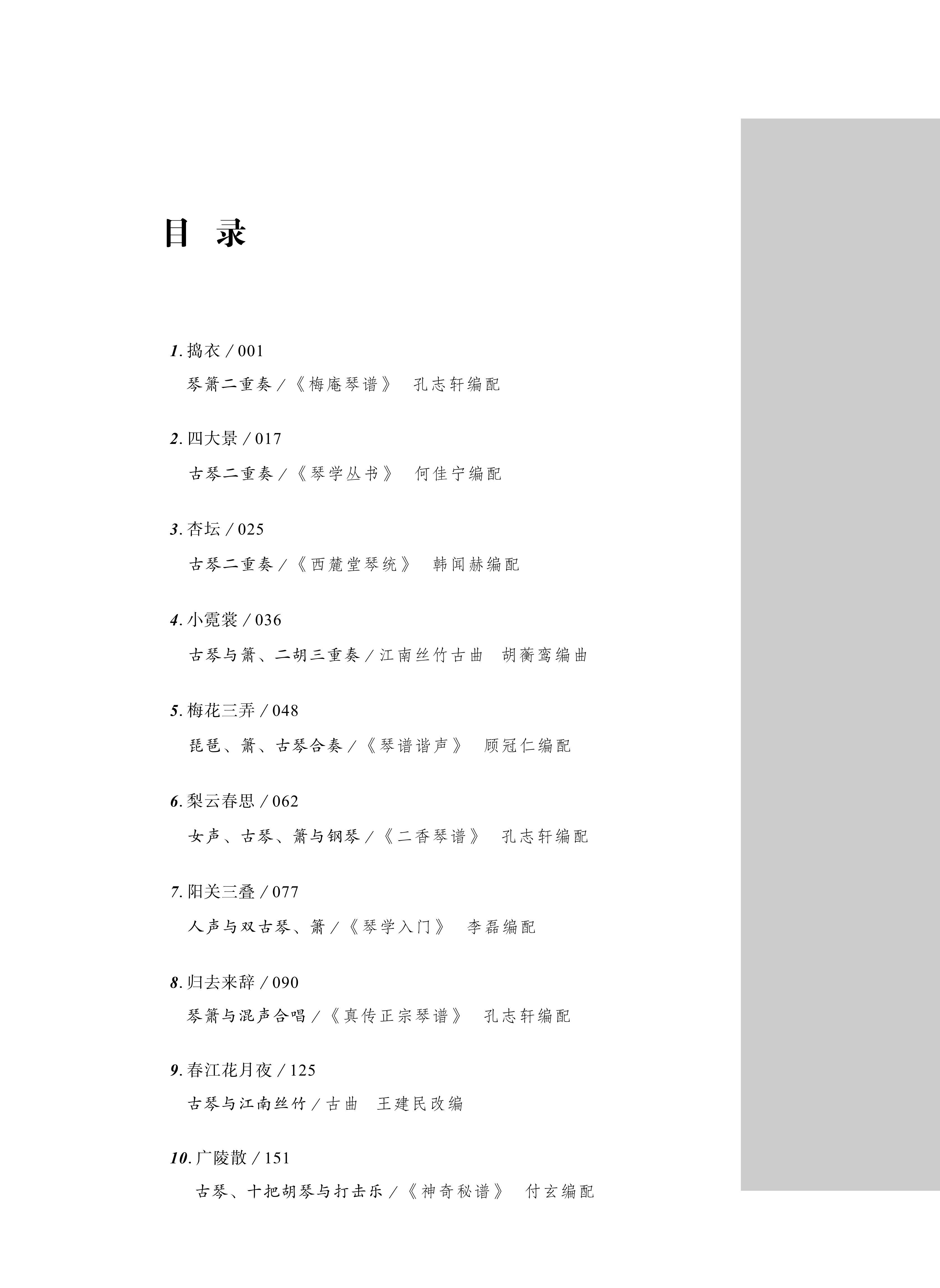 下篇为编配作品篇,精选十首以经典古琴传统曲目为蓝本编配而成的重奏作品,实现传统与现代的巧妙融合。
