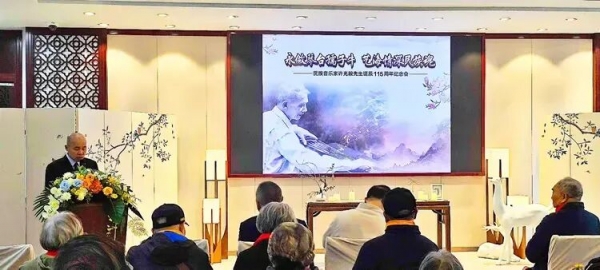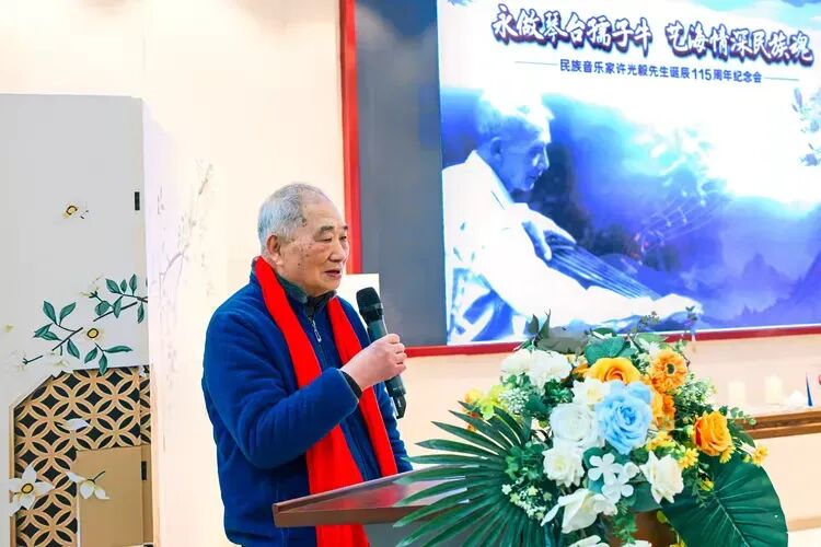 纪念活动在上海滨海古园追远厅拉开帷幕。许光毅先生长子、德艺双馨的著名笛子演奏家许国屏在致辞中,深情回顾了父亲不平凡的一生:从少年时怀揣复兴国乐的理想,追随刘天华、郑觐文先生投身民乐事业;到抗日战争时期,义无反顾赴美募捐巡演,既完成抗日救国使命,更架起中西文化交流桥梁;新中国成立后,受陈毅市长委任状,亲手创建上海民族乐团,为民族音乐在新时代的扎根生长奠定基石。他特别提及父亲对子女的谆谆教诲与对民乐事业的执着追求,言语间满是追思与敬意,并向所有与会嘉宾表达诚挚感谢。