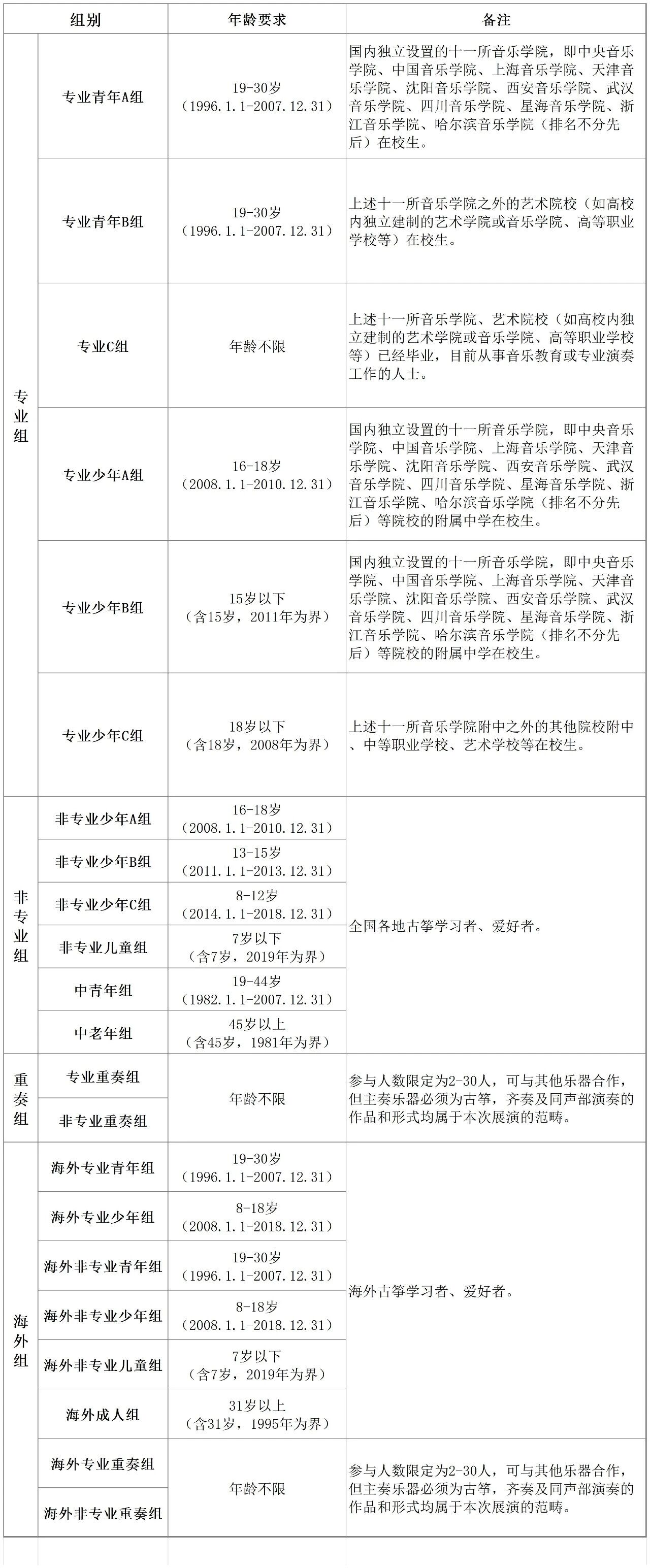 4.所有参加展演选手的报名组别均以当前就读状态及公历出生日期为准,选手采取“就高不就低”的报名原则,可根据自身水平报应属组别或高于自身组别的组别,不能报低于自身组别的组别。例如:专业青年B组选手可报专业青年A组;非专业低年级组可报非专业高年级组;非专业组也可报专业组。