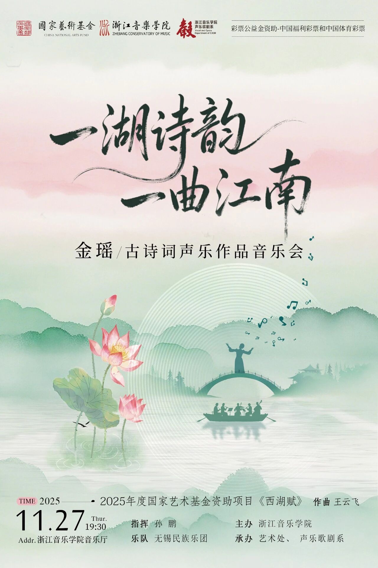 演出推荐|“一湖诗韵 一曲江南”金瑶古诗词声乐作品音乐会即将上演