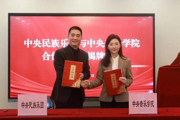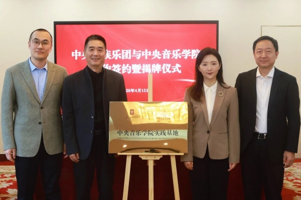 2026年4月15日下午,中央民族乐团与中央音乐学院在中央民族乐团民族音乐厅正式牵手,共同开启全面合作,并为“中央音乐学院——中央民族乐团实践基地”揭牌。此举标志着两家“国家队”在人才培养、艺术实践、创作研究等领域迈出实质性合作步伐。