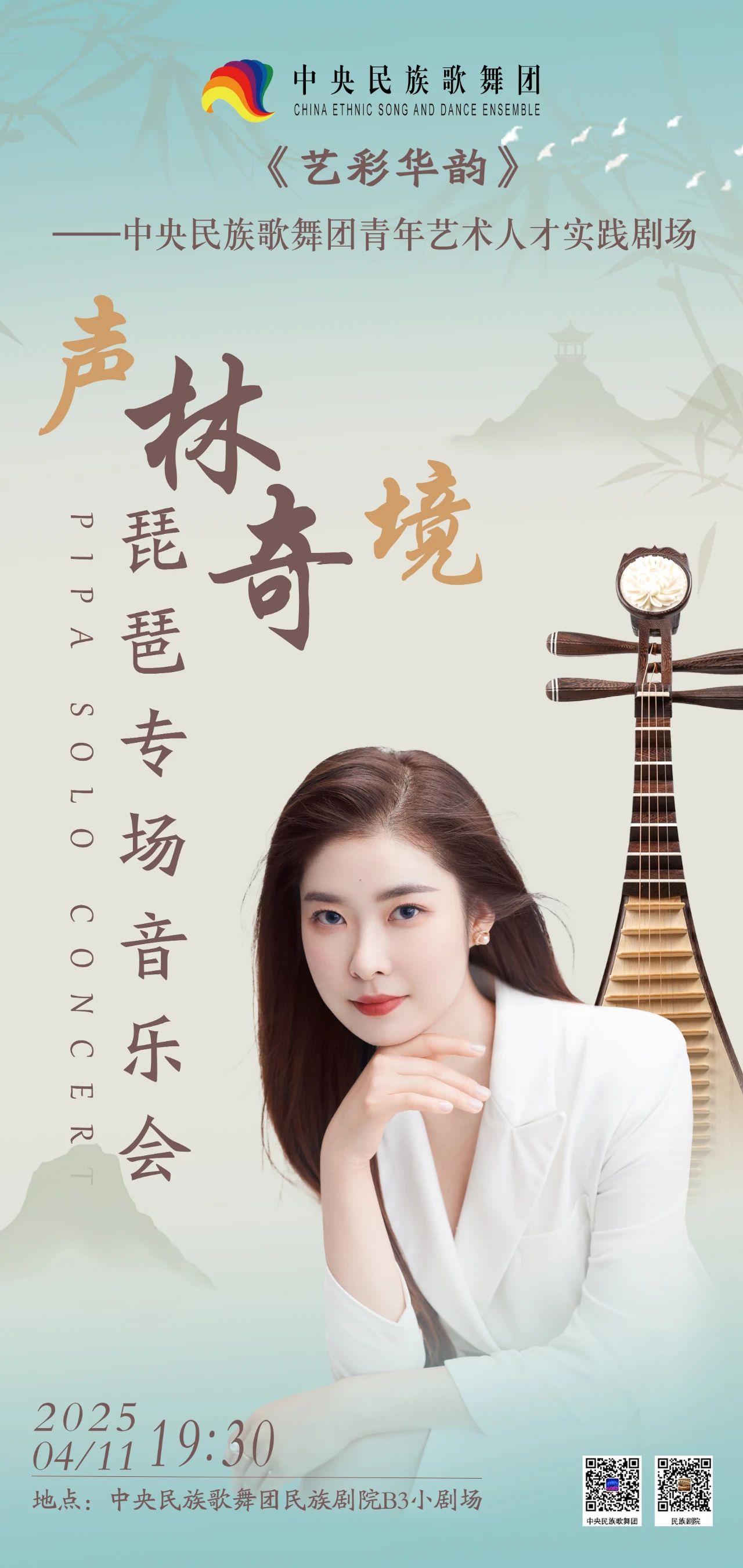 2025年首场演出《声林奇境琵琶专场音乐会》将于4月11日19:30 在中央民族歌舞团民族剧院B3小剧场上演。
